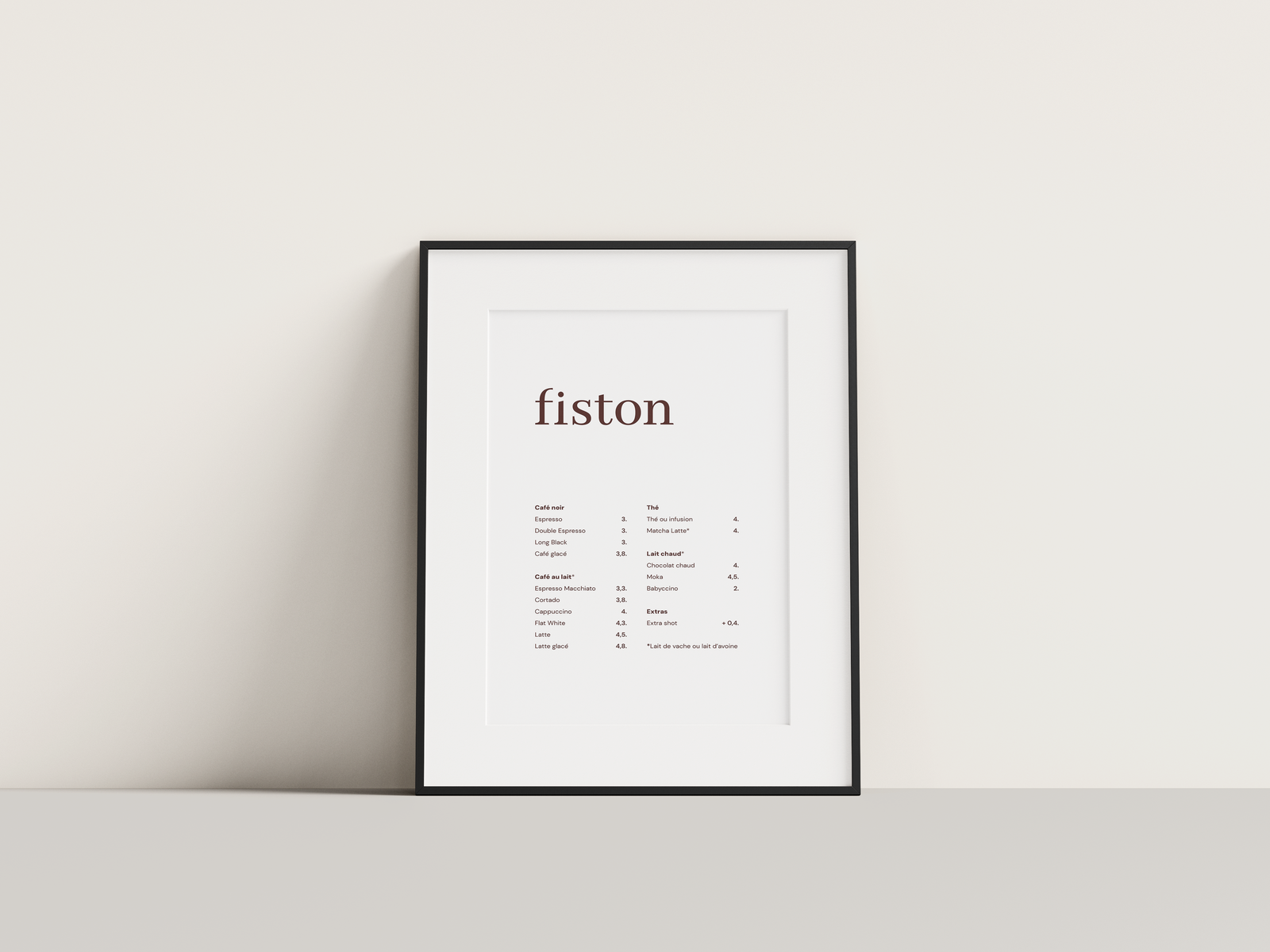 Alors chef d’entreprise de l’Artisanal à Woluwe-Saint-Lambert, mon client décide, fin juin 2024, d’ouvrir un nouvel établissement : Fiston. Ce projet, qui mûrissait depuis plusieurs années, a pour concept la création 100% artisanale de délicieux encas, avec pour point commun la base de brioche. Pour donner vie à son projet, il me confie la mission de représenter son univers et de lui concocter une charte graphique qui reflétera au mieux l’image de son projet.