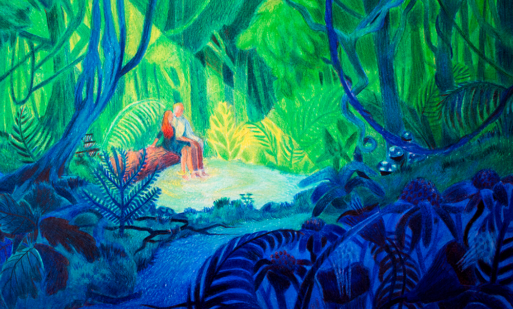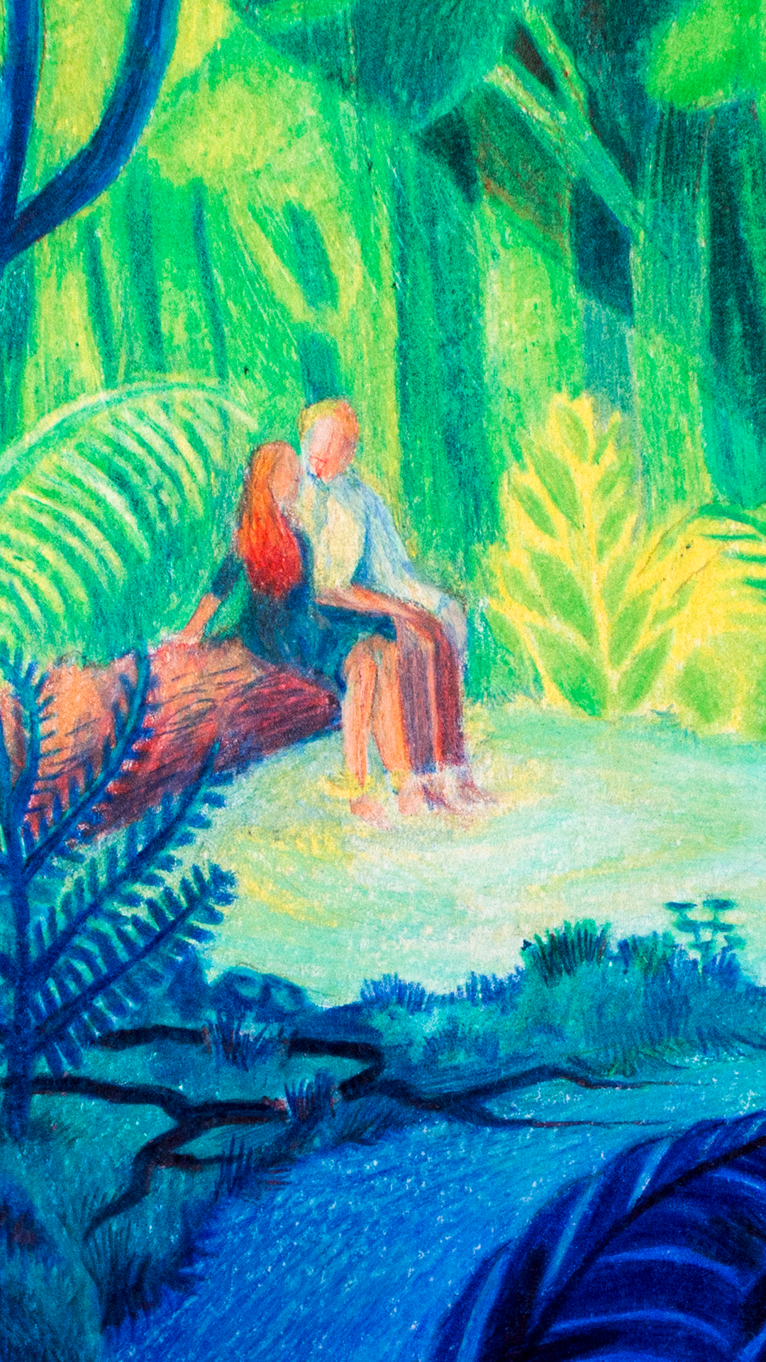 En 2023, j’ai eu la chance de réaliser une commande pour un mariage : la mariée souhaitait un dessin représentant une jungle, au crayon de couleur. Après avoir développé plusieurs concepts et tests d’ambiance, je lui ai finalement livré l’original : cette illustration au format A4 sur papier épais.
